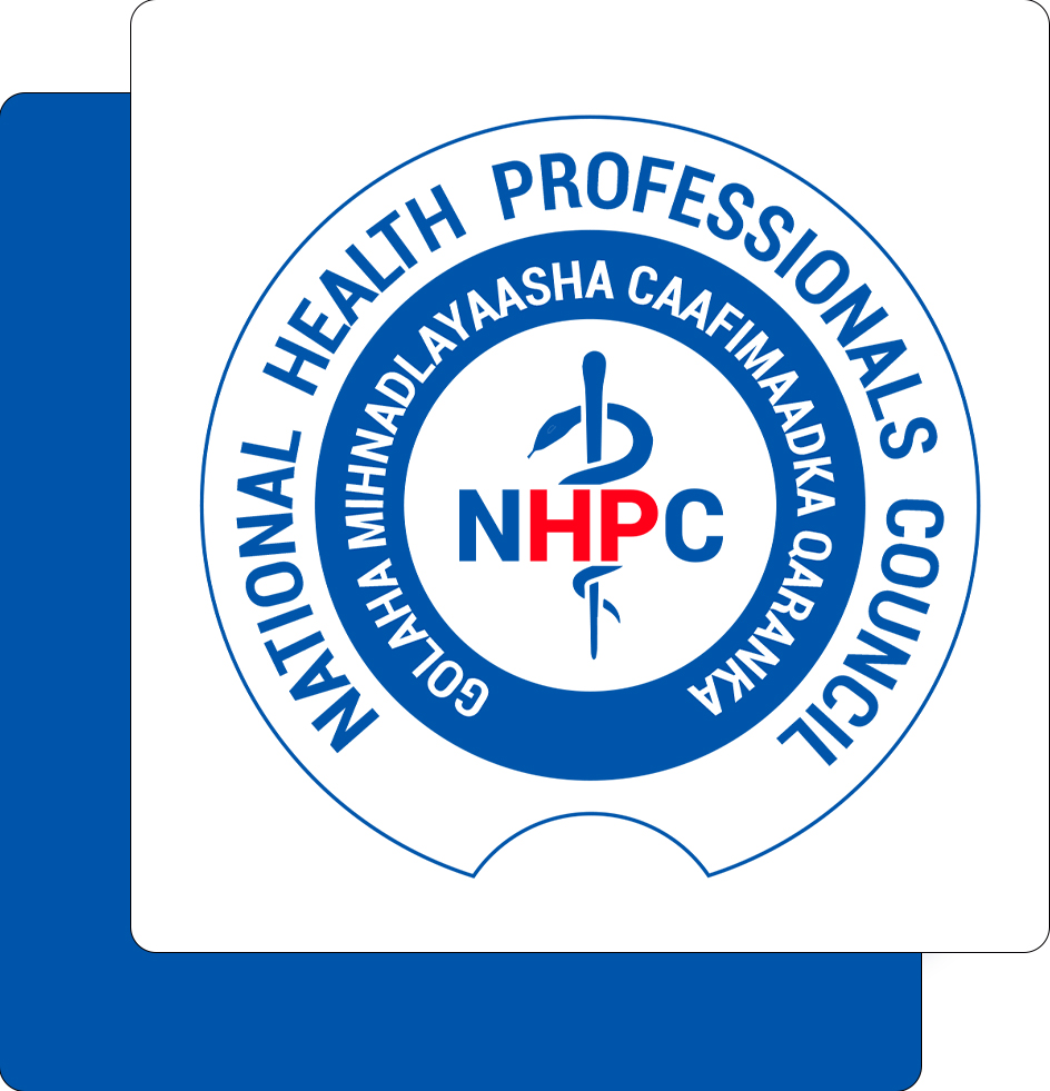 The National Health Professionals Council (NHPC) is an independent statutory regulatory body established under Act Lr.31 of 2020 by the Federal Government of Somalia. The Council is mandated to regulate and oversee the registration, licensing, and professional conduct of all health professionals, health facilities, and health education institutions across the country.
